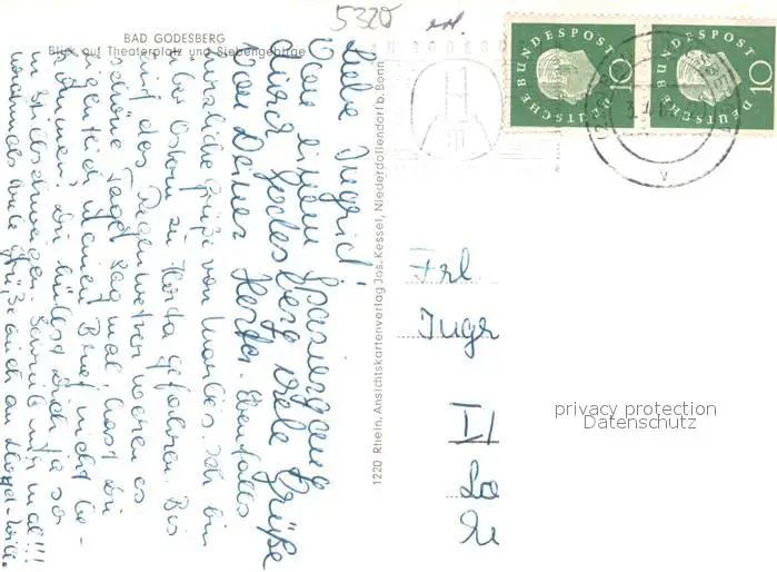 Bad_Godesberg Fliegeraufnahme mit Theaterplatz und Siebengebirge Bad_Godesberg postalisch gelaufen 1961 Erhaltung siehe scans [WerneD78] WernPID7