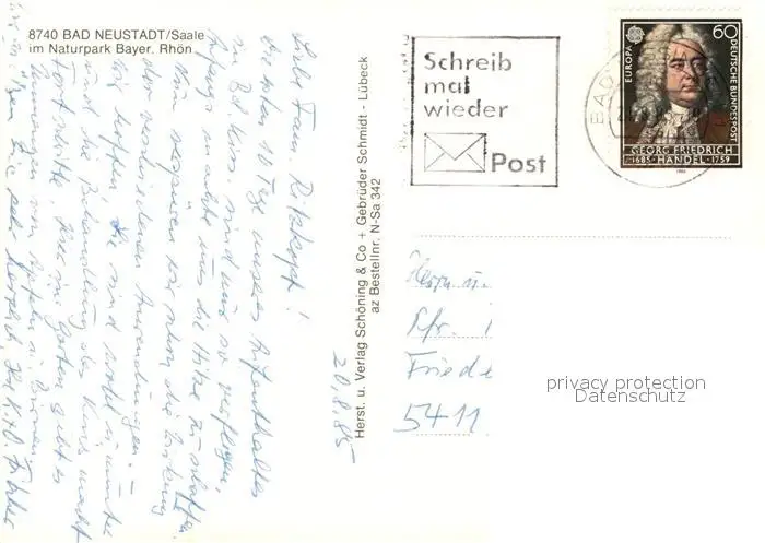 Bad_Neustadt Kategorie Alte Ansichtskarten Postkarten bx45547 Bad_Neustadt Schloss Cafe Bad_Neustadt postalisch gelaufen 1985 Erhaltung siehe scans [LiesaD40]