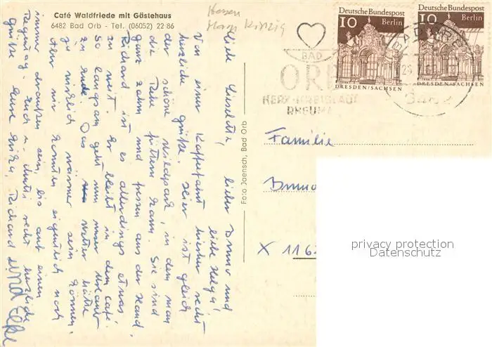 Bad_Orb Café Waldfriede mit Gaestehaus Bad_Orb postalisch gelaufen 1968 Erhaltung siehe scans [FriedD77] Frierer