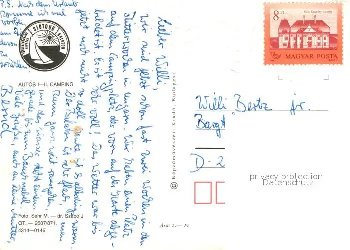 Balaton_Plattensee Auto Camping Segeln Balaton_Plattensee postalisch gelaufen 1986 Erhaltung siehe scans [FriedD77] Frierer