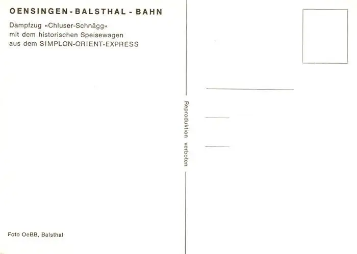 Balsthal_SO Dampfzug Chluser Schnaegg Oensingen-Balsthal-Bahn Historischer Speisewagen Simplon-Orient-Express postalisch nicht gelaufen nach 1965 Erhaltung siehe scans [FriedD77] [Frierer ]