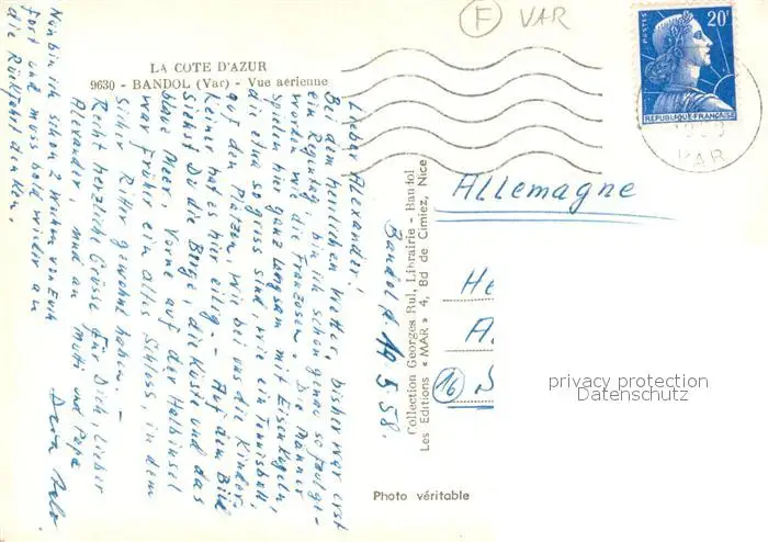 Bandol_83-sur-Mer Côte d'Azur vue aérienne postalisch gelaufen 1958 Erhaltung siehe scans [FriedD77] Frierer