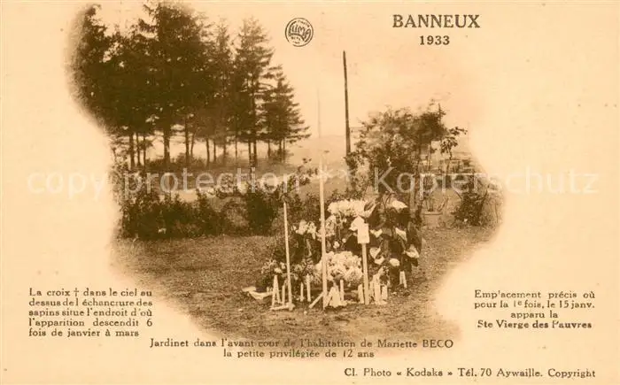 AK / Ansichtskarte Banneux Jardinet dans l’avant cour de l’habitation de Mariette Beco la petite privilegiee de 12 ans Banneux