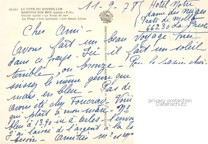 Banyuls-sur-Mer Vieille ruelle front de mer plage Hauts Lieux vue aérienne Banyuls-sur-Mer postalisch nicht gelaufen 1978 Erhaltung siehe scans [FriedD77] Frierer