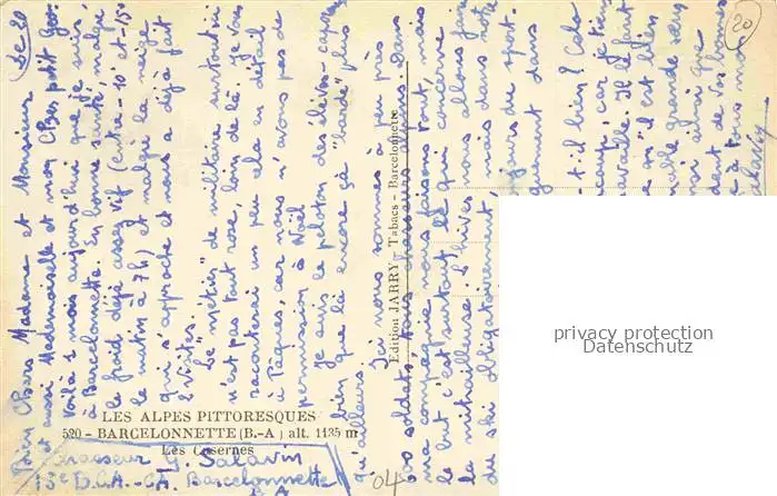 14072303 Barcelonnette 04 Alpes-de-Haute-Provence Les Casernes postalisch nicht gelaufen Erhaltung siehe scans [FriedD77] Frie Katcode 11170004104019
