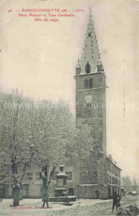 14072298 Barcelonnette 04 Alpes-de-Haute-Provence Place Manuel et Tour Cardianlis Effet de neige postalisch gelaufen Erhaltung siehe scans [FriedD77] alte Postkarte Frie Katcode 11170004104019