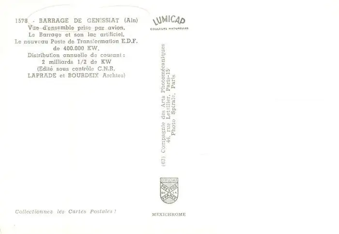 Barrage_de_Genissiat_01_Ain Vue d’ensemble prise par avion postalisch nicht gelaufen nach 1965 Erhaltung siehe scans [WerneD78] WernPID7