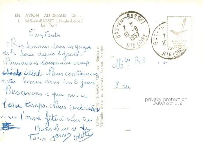 Bas-en-Basset Le Pont vue aérienne Bas-en-Basset postalisch gelaufen 1957 Erhaltung siehe scans [FriedD77] Frierer