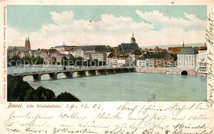 Basel_BS Alte Rheinbruecke Basel_BS postalisch gelaufen 1903 Erhaltung siehe scans [LiesaD40] LiesID40