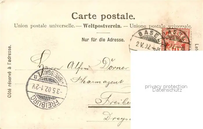 Basel_BS Botanischer Garten Basel_BS postalisch gelaufen 1902 Erhaltung siehe scans [NatalD47] NataID47