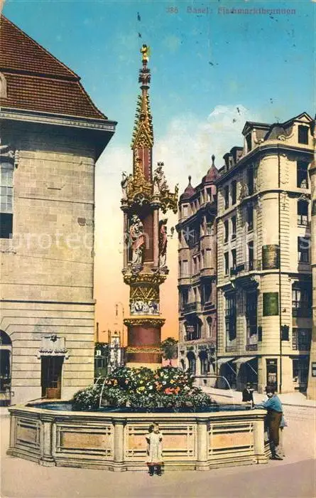 Basel_BS Fischmarktbrunnen Basel_BS postalisch gelaufen 1913 Erhaltung siehe scans [FriedD77] Frierer