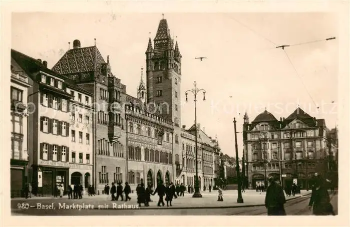 Basel_BS Marktplatz mit Rathaus Basel_BS postalisch gelaufen 1928 Erhaltung siehe scans [WerneD78] WernPID7