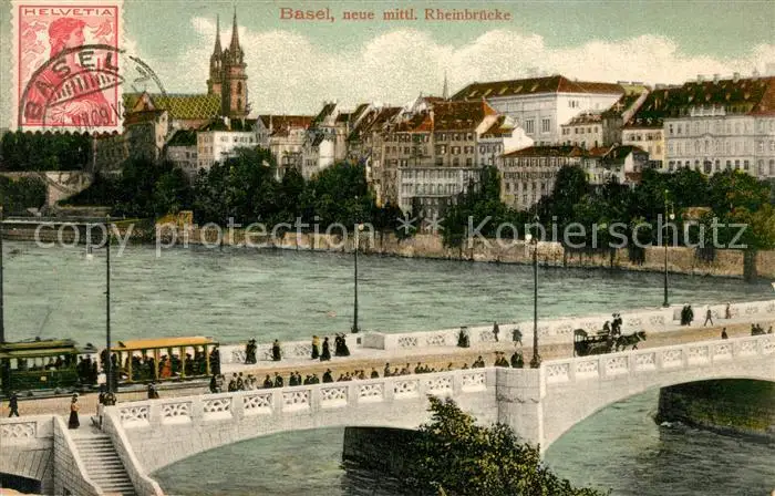 AK / Ansichtskarte Basel_BS Mittlere Rheinbr?cke Strassenbahn Basel_BS