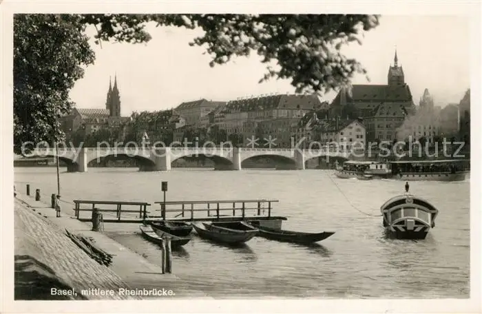 AK / Ansichtskarte Basel_BS Mittlere Rheinbruecke Faehre Basel_BS