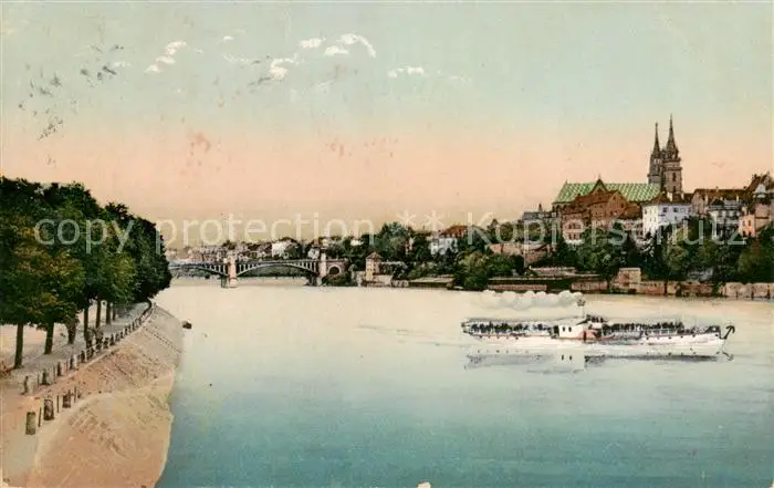 Basel_BS Muenster mit Pfalz Wettsteinbruecke und oberer Rheinweg Basel_BS postalisch gelaufen bis 1920 Erhaltung siehe scans [WerneD78] WernPID7