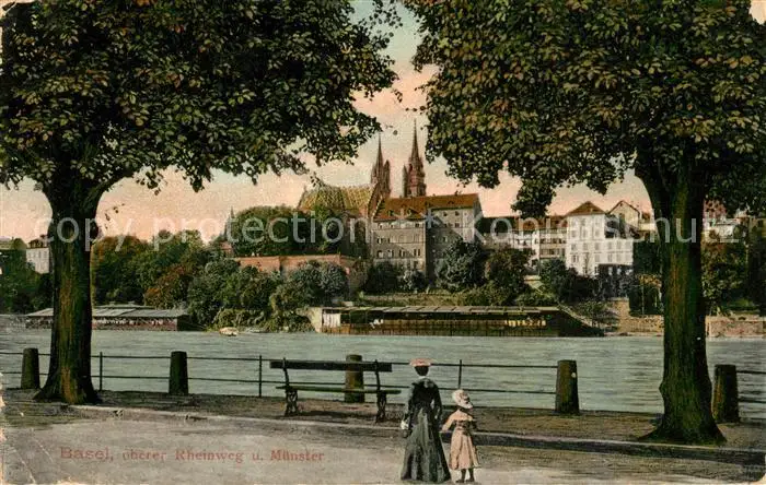 AK / Ansichtskarte Basel_BS Oberer Rheinweg mit Muenster Basel_BS