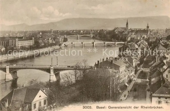 Basel_BS Panorama der Rheinbruecken Basel_BS postalisch gelaufen 1909 Erhaltung siehe scans [WerneD78] WernPID7