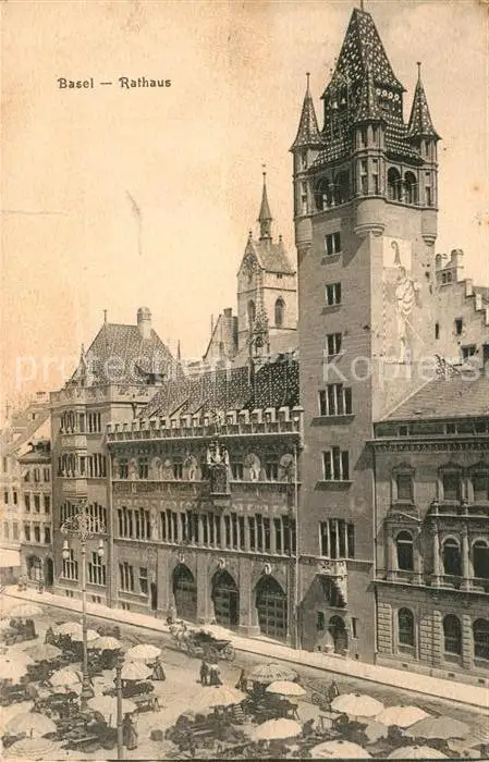 Basel_BS Rathaus Marktplatz Basel_BS postalisch gelaufen 1906 Erhaltung siehe scans [FriedD77] Frierer