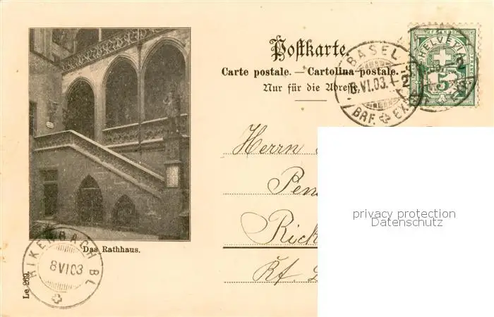 Basel_BS Rathhaus Basel_BS postalisch gelaufen 1903 Erhaltung siehe scans [WerneD78] WernPID7