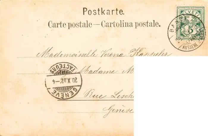 Basel_BS Reinach. R. Bauhofer Basel_BS postalisch gelaufen 1902 Erhaltung siehe scans [NoemiOhl] Noem Ohl