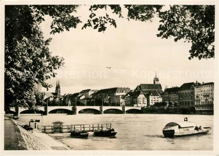 Basel_BS Rheinpartie mit Mittlerer Rheinbruecke Basel_BS postalisch gelaufen 1950 Erhaltung siehe scans [LiesaD40] LiesID40