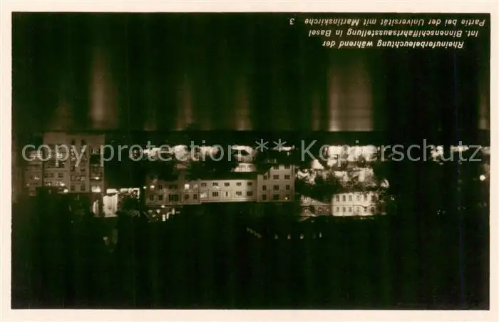 Basel_BS Rheinuferbeleuchtung Partie bei der Universitaet mit Martinskirche Basel_BS postalisch nicht gelaufen 1921-1965 Erhaltung siehe scans [FriedD77] Frierer