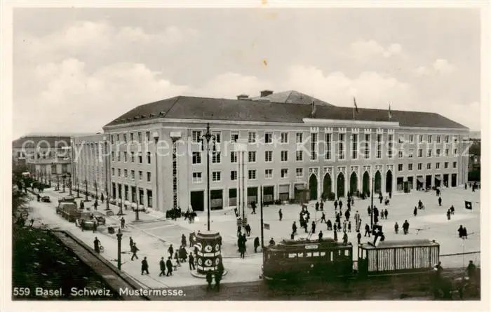 AK / Ansichtskarte Basel_BS Schweizer Mustermesse m. Strassenbahn Basel_BS