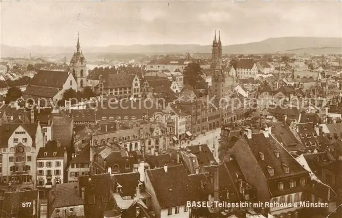 Basel_BS Teilansicht mit Rathaus und Muenster Basel_BS postalisch gelaufen 1924 Erhaltung siehe scans [WerneD78] WernPID7