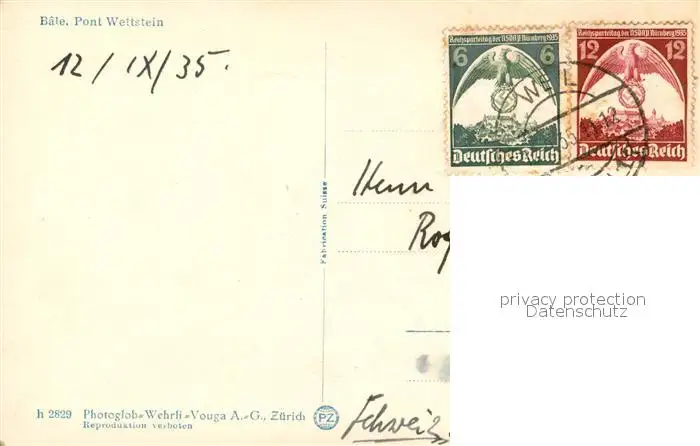 Basel_BS Wettsteinbruecke Basel_BS postalisch gelaufen 1935 Erhaltung siehe scans [WerneD78] WernPID7