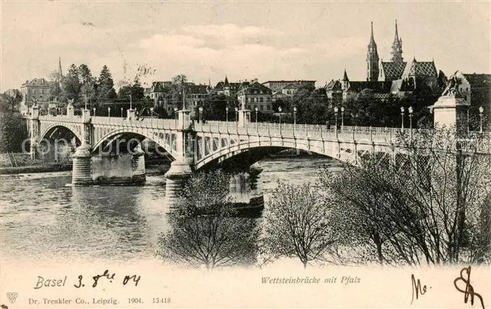 Basel_BS Wettsteinbruecke mit Pfalz Basel_BS postalisch gelaufen 1904 Erhaltung siehe scans [WerneD78] WernPID7