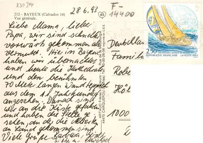 Bayeux_14_Calvados Vue generale aerienne postalisch gelaufen 1993 Erhaltung siehe scans [WerneD78] WernPID7