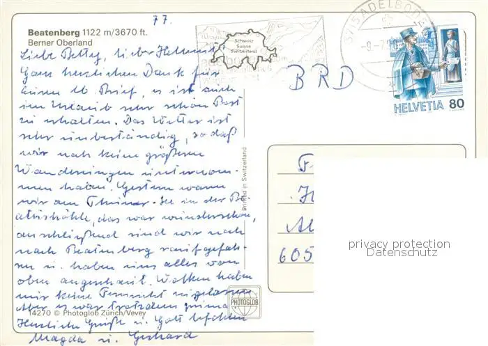 Beatenberg Thunersee Alpenpanorama Alte Haeuser Beatenberg postalisch gelaufen 1990 Erhaltung siehe scans [FriedD77] Frierer