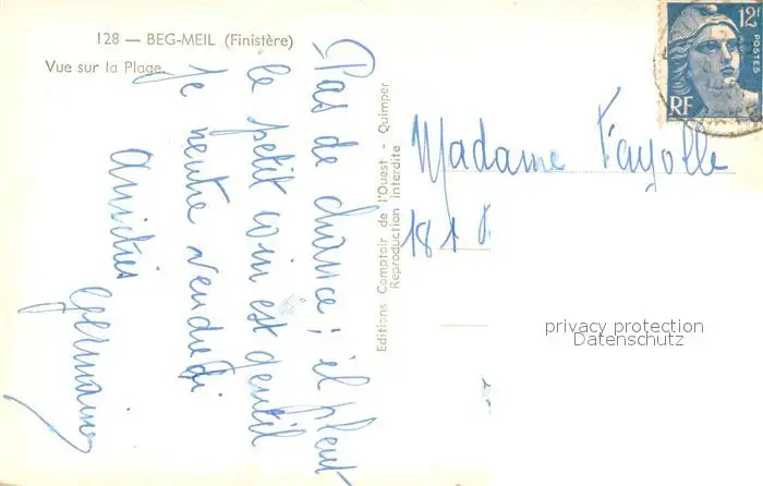 Beg_Meil Vue sur la Plage Beg_Meil postalisch gelaufen 1921-1965 Erhaltung siehe scans [WerneD78] WernPID7