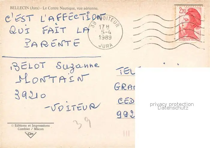 Bellecin_Orgelet Centre nautique vue aérienne postalisch gelaufen 1989 Erhaltung siehe scans [FriedD77] Frierer