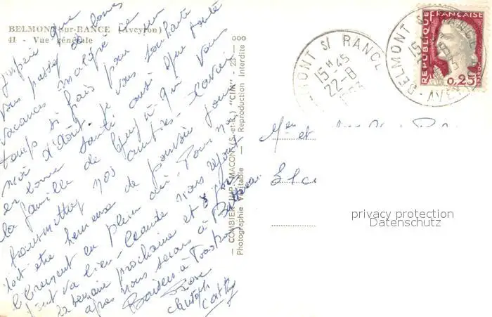 Belmont-sur-Rance Belmont-sur-Rance postalisch gelaufen 1963 Erhaltung siehe scans [LiesaD40] LiesID40