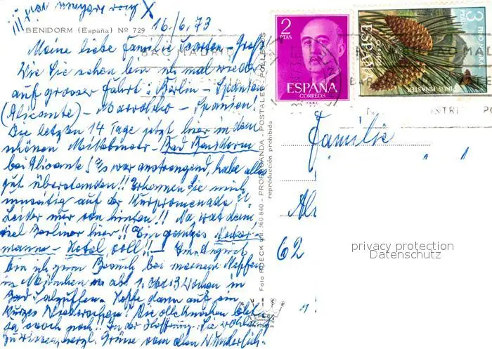 Benidorm Strand Promenade Benidorm postalisch gelaufen 1973 Erhaltung siehe scans [KathaD81] Kathoren