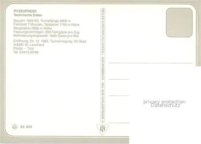 Bergbahn Pitzexpress Pitztal Gletscher Schraegstollenbahn Bergbahn postalisch nicht gelaufen nach 1965 Erhaltung siehe scans [PaolaD17] PaolPID1