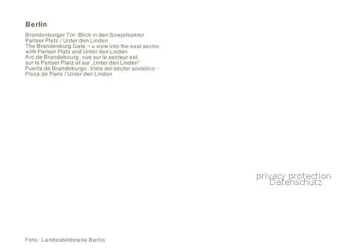 Berlin Fliegeraufnahme Brandenburger-Tor Sowjetsektor Pariser-Platz Unter-den-Linden Berlin postalisch nicht gelaufen 1921-1965 Erhaltung siehe scans [LiesaD40] LiesID40