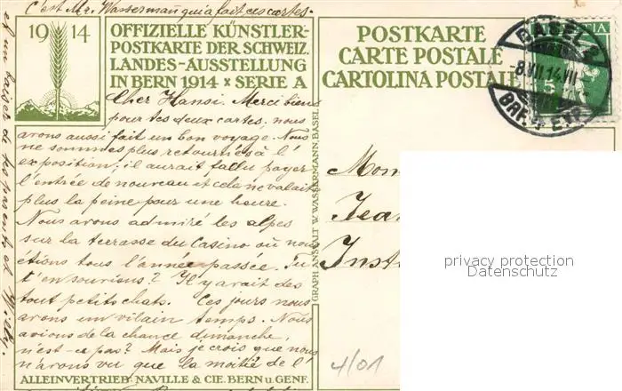 Bern_BE Landes Ausstellung Bern 1914 Bern_BE postalisch gelaufen 1914 Erhaltung siehe scans [WerneD78] WernPID7