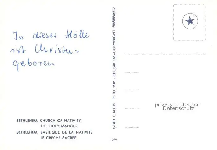 Bethlehem_Yerushalayim Church of Nativity The Holy Manger Bethlehem_Yerushalayim postalisch nicht gelaufen nach 1965 Erhaltung siehe scans [FriedD77] Frierer