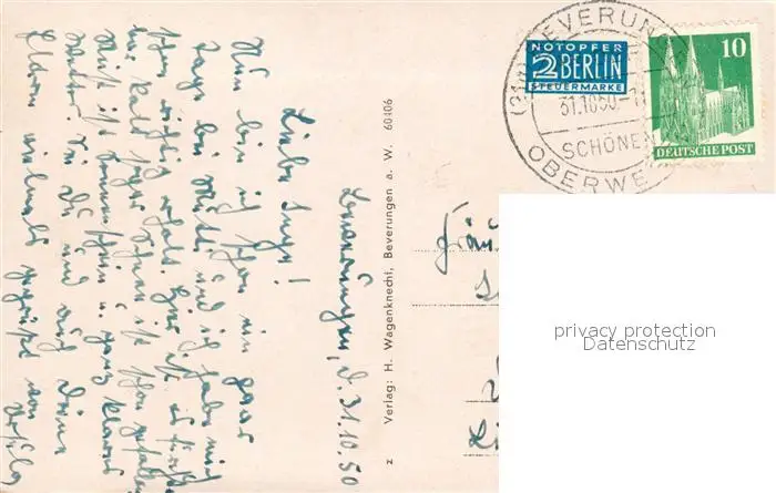 Beverungen Kategorie Alte Ansichtskarten Postkarten bx57380 Beverungen Rathaus Kirche Beverungen postalisch gelaufen 1950 Erhaltung siehe scans [PaolaD17]