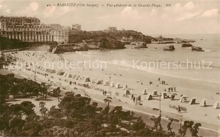 Biarritz_Pyrenees_Atlantiques Vue generale de la Grande Plage Biarritz_Pyrenees postalisch nicht gelaufen 1921-1965 Erhaltung siehe scans [WerneD78] WernPID7