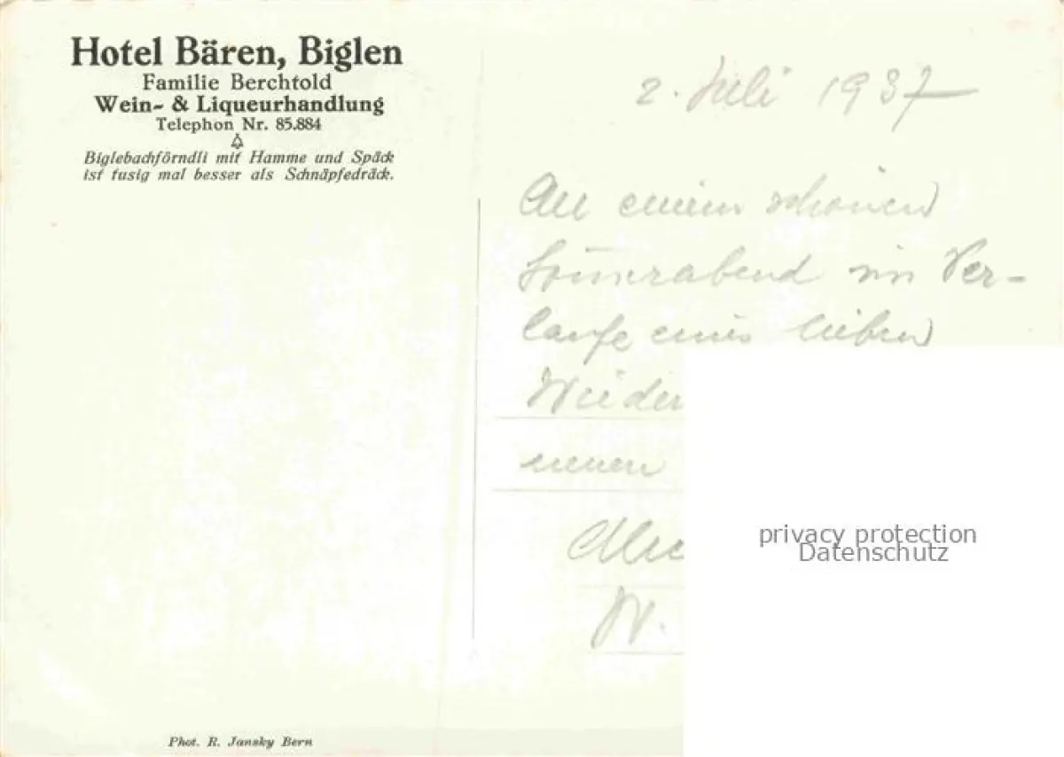 14121036 Biglen BE Hotel Baeren Kirche postalisch nicht gelaufen Erhaltung siehe scans [FriedD77] Frie Katcode 11470060180312