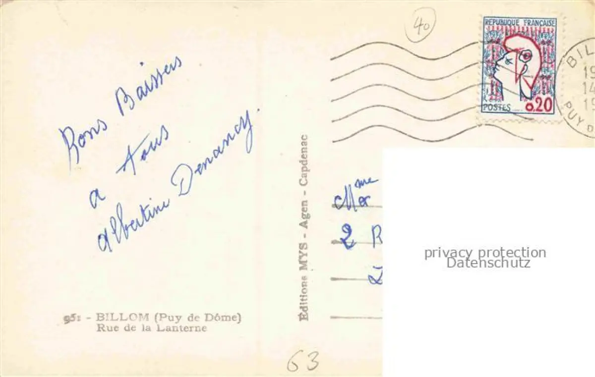 carte postale Billom Clermont-Ferrand 63 Puy-de-Dome Rue de la Lanterne postalisch gelaufen Erhaltung siehe scans [FriedD77]