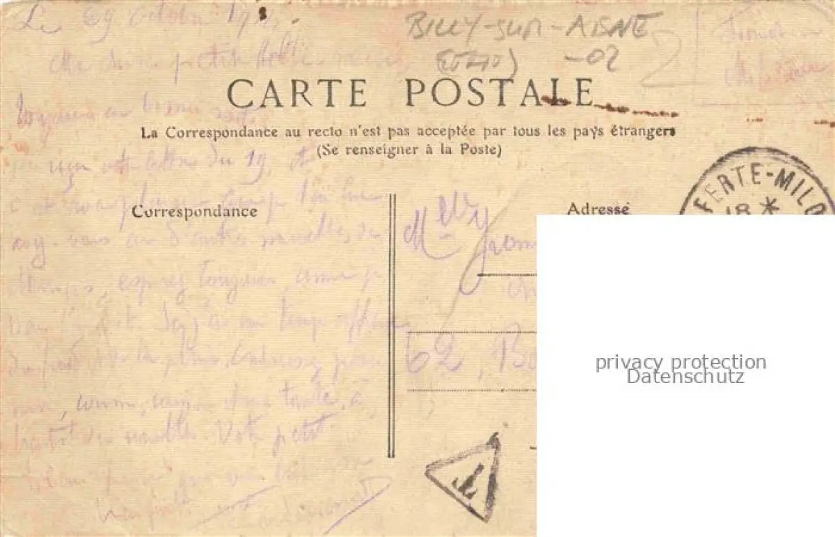 14114974 Billy-sur-Aisne Soissons 02 Aisne Rue de la belle place postalisch gelaufen Erhaltung siehe scans [WerneD78] carte postale Wern Katcode 11170002402089