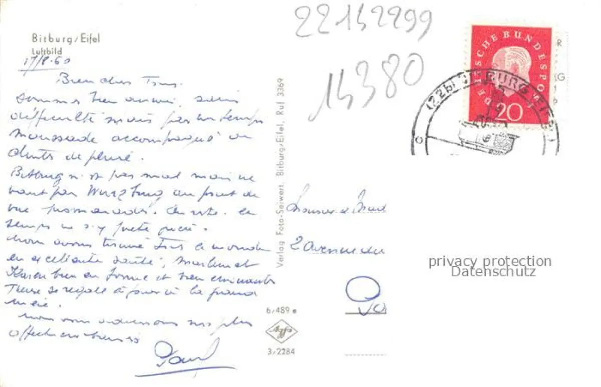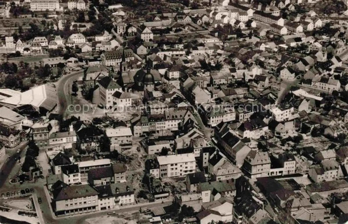 alte Postkarte Bitburg Stadtzentrum postalisch gelaufen Fliegeraufnahme Erhaltung siehe scans [FriedD77]