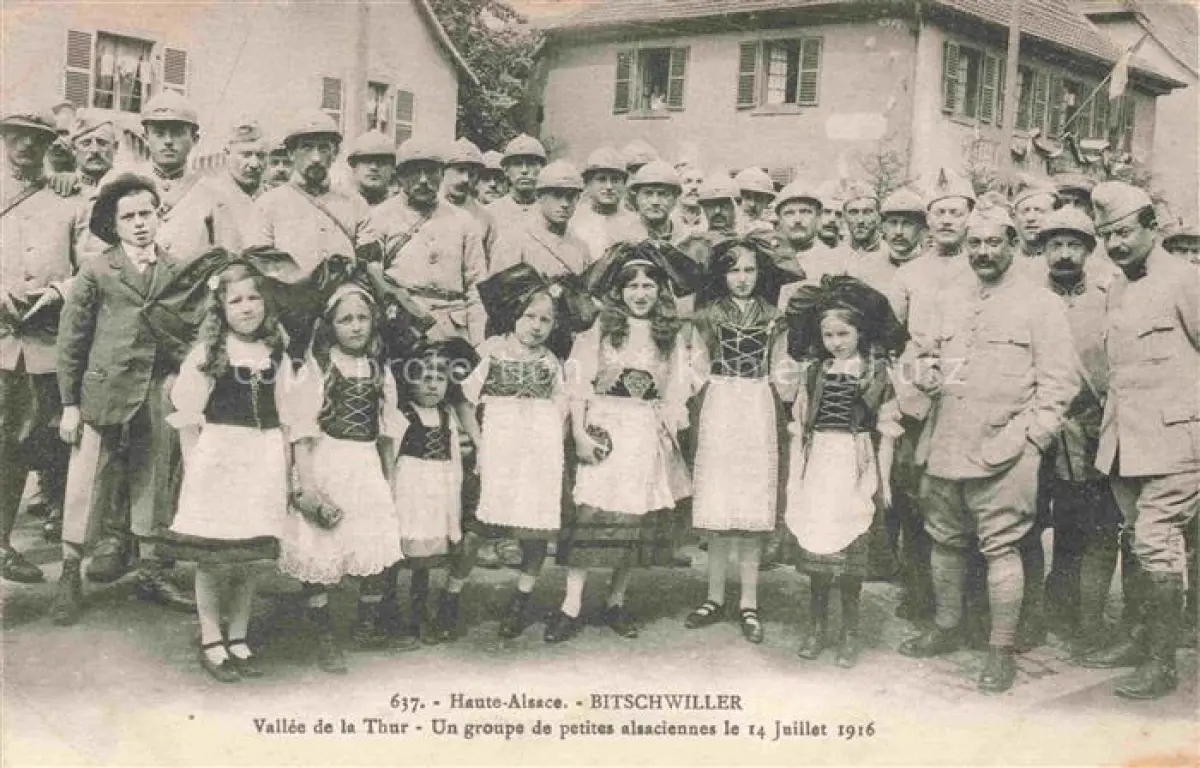 Bitschwiller-les-Thann Bitschweiler 68 Haut-Rhin Vallée de la Thur Un groupe de petites alsaciénnes le 14 Juillet 1916 postalisch nicht gelaufen Erhaltung siehe scans [FriedD77]