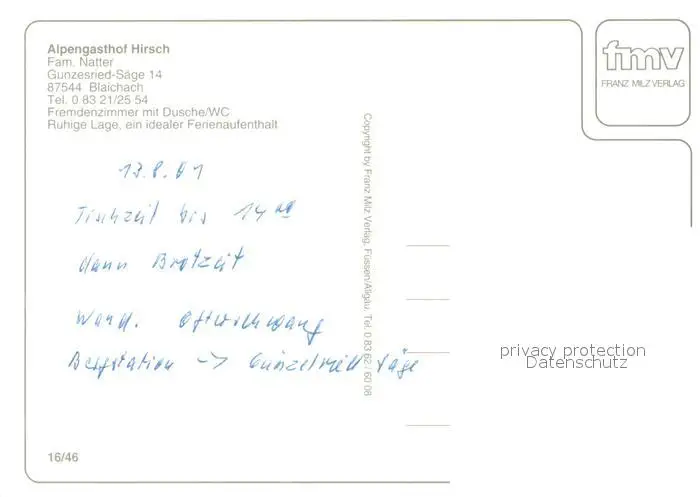 Blaichach_Allgaeu Alpengasthof Hirsch Gunzesried Saege Blaichach_Allgaeu postalisch nicht gelaufen 1981 Erhaltung siehe scans [WerneD78] WernPID7