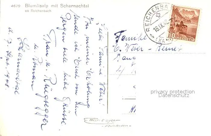 Bluemlisalp_BE Fliegeraufnahme mit Scharnachtal ob Reichenbach Bluemlisalp BE postalisch gelaufen 1948 Erhaltung siehe scans [LiesaD40] LiesID40