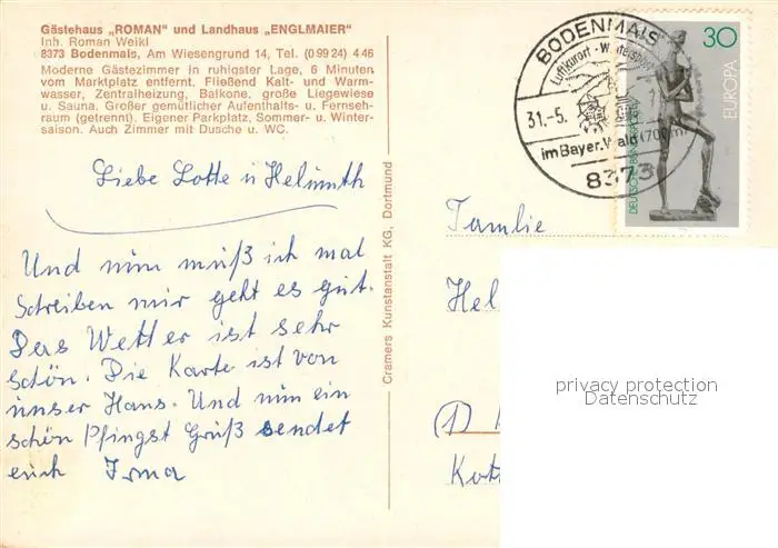 Bodenmais Gaestehaus Roman und Landhaus Englmaier Gaststube Terrasse Panorama Bodenmais postalisch gelaufen 1974 Erhaltung siehe scans [WerneD78] WernPID7